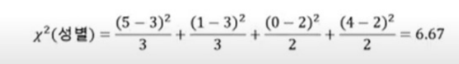 카이제곱 통계량은 데이터의 분포와 개발자가 선택한 기대 또는 가정된 분포 사이의 차이를 나타내는 측정값입니다. 종속 변수에 대해 독립 변수에 따라 분류한 후 통계량이 더 큰 분류 기준으로 종속 변수를 분류해야 합니다. 다음의 예시에서 카이제곱 통계량이 결혼 유무보다 성별이 더 크므로 종속변수인 LC와 CC는 성별로 분류되어야 불순도를 감소시킬 수 있는 것입니다.