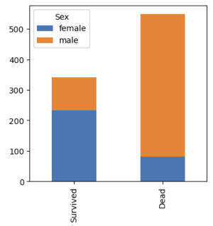 성별에 따르면 생존자 중에는 여성이 많지만, 사망자 중에는 남성이 많은 것을 확인할 수 있습니다.
