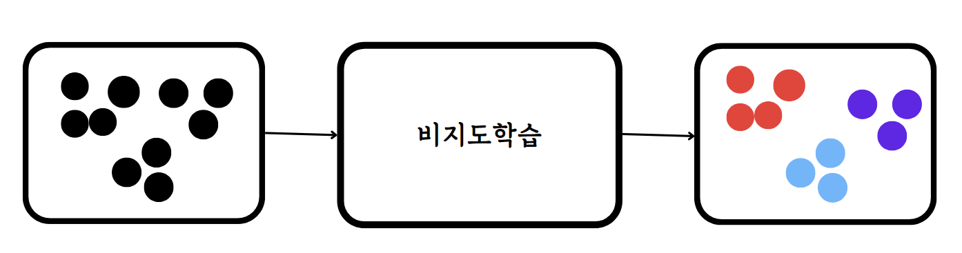 비지도학습(Unsuperviesed Learning)은 지도학습과 다르게 label이 존재하지 않는 data를 다루는 알고리즘입니다. 결국 data가 가지고 있는 특성 자체를 학습하여 새로운 data의 특성은 어떠한지 추출하는 것이 비지도학습의 목적입니다. label, 즉 정답이 없는 data를 학습하는 비지도학습이기에 지도학습보다 높은 정확도를 만들어내는데 어려움이 있지만 data의 특징을 추출할 때 유용하게 사용됩니다. 예를 들어 label이 없는 data를 비슷한 특성끼리 묶는 군집화를 하고 싶을 때 비지도학습이 사용됩니다. 비지도학습 예에는 KMeans 알고리즘이나 PCA 주성분 분석이 있습니다.